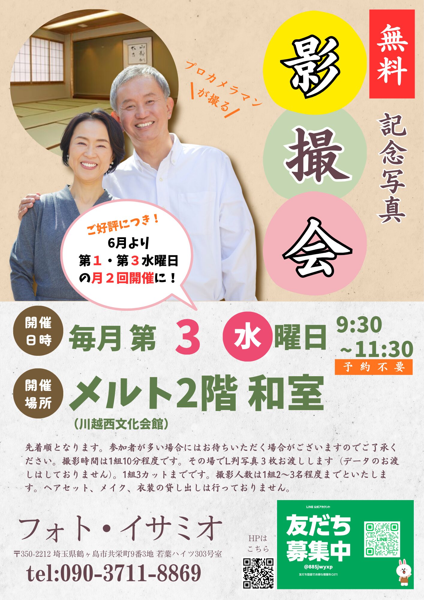 そんな方のために、月1回(第3水曜日)無料の定期撮影会を開催しています。