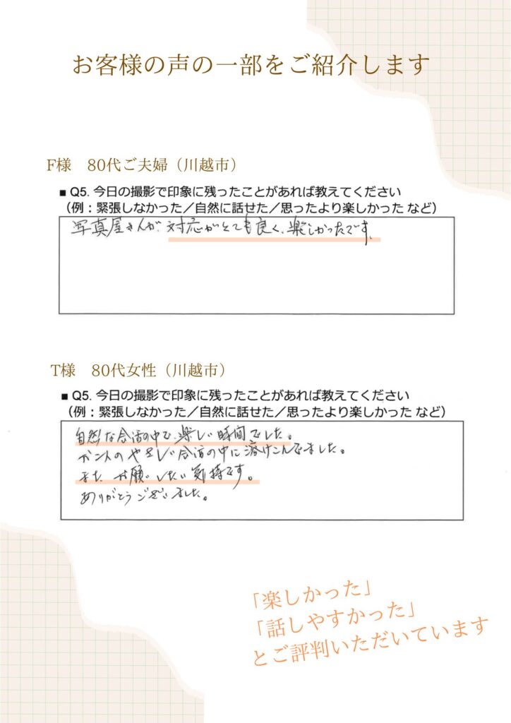 「写真を撮られるのが苦手だったけど安心できました」